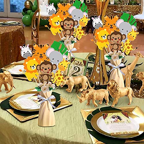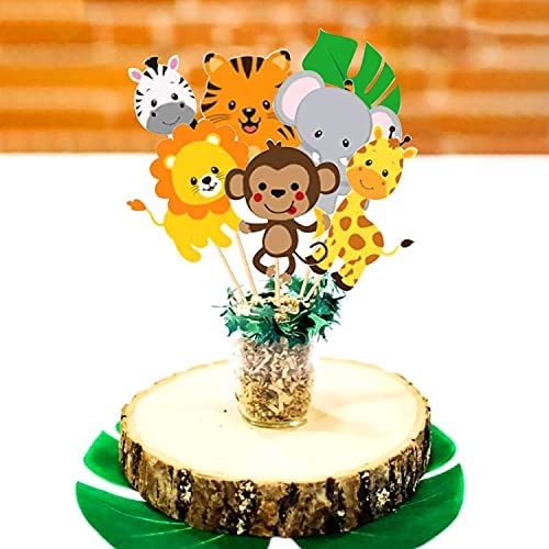 LaVenty 24 PCS Cute Safari Animal Birthday Centerpiece Jungle Animals Cupcakes Jungle Party Safari Centerpiece Safari Baby Shower Decoration Jungle Baby Shower Decoration