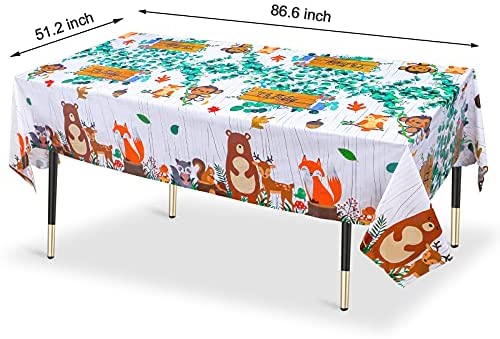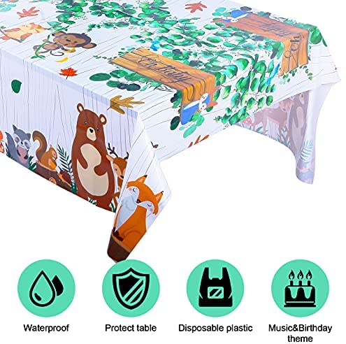 Lcoor 3 Pieces Animal Safari Tablecloth, Plastic Woodland Forest Table Covers, Jungle Theme Wild One Party Table Cloth for Kids Birthday Party Supplies, 86.6 x 51.2 Inches