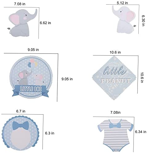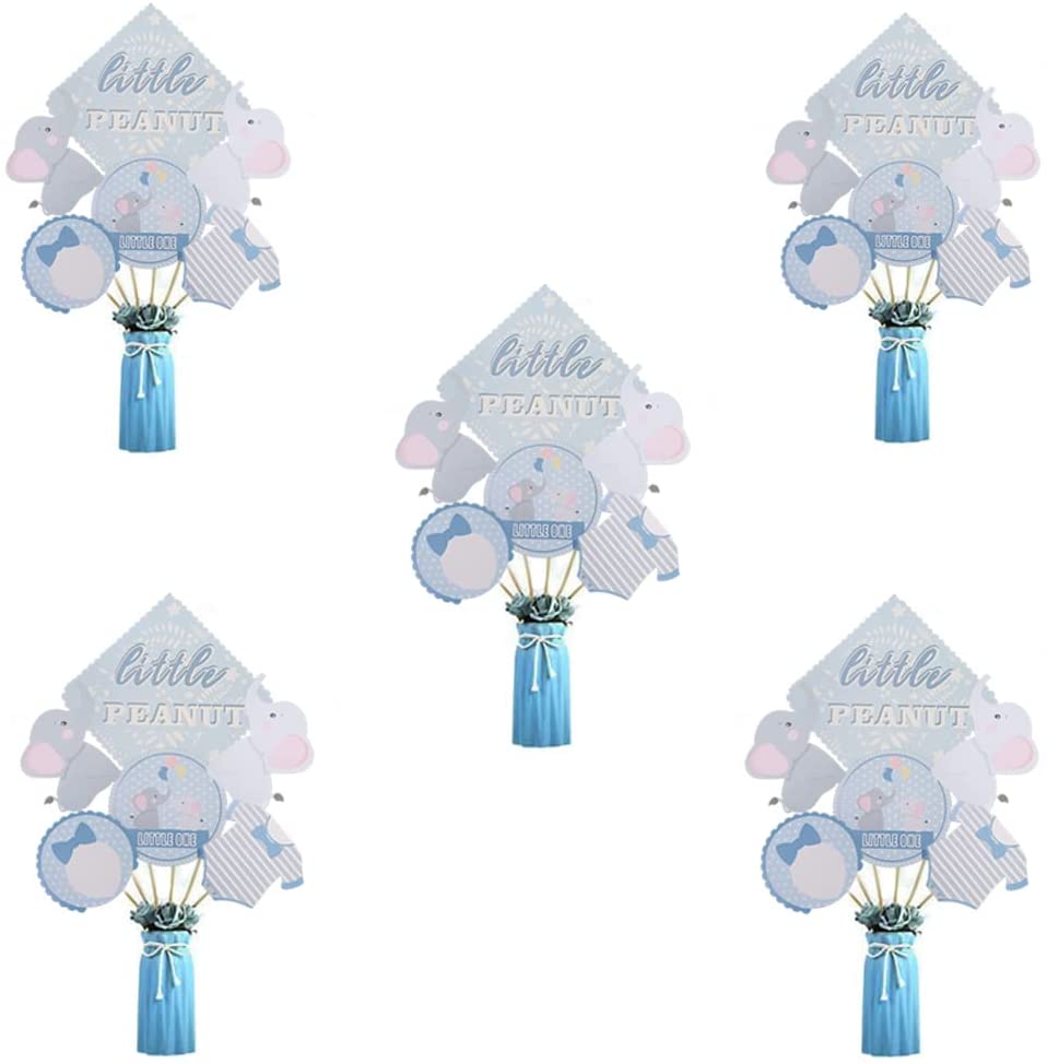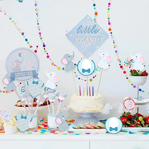 LEBERY 24pcs Blue Elephant Centerpiece Sticks, Baby Boy Its A Boy Table Topper Decorations Blue Little Peanut Cutouts for Blue Elephant Theme Boy Baby Shower Birthday Party Supplies, Double Side Printed