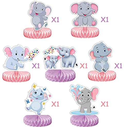 LEBERY 7pcs Pink Elephant Honeycomb Centerpiece, Baby Girl Its A Girl 3D Table Decoration Pink Little Peanut Cutouts for Pink Elephant Theme Girl B…