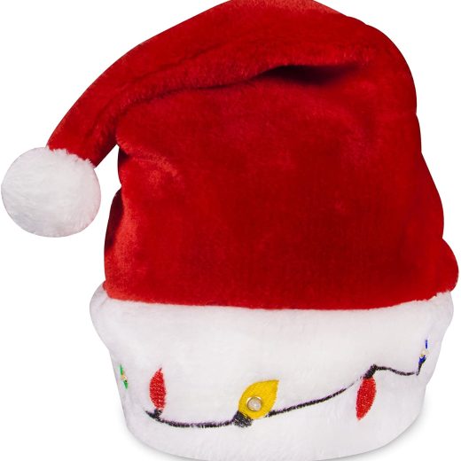 ?TWICE THE XMAS FUN ?Introducing our plush LED Light-up Santa Bulb Hat. We took the beauty of led Christmas bulbs and added them to a classic Santa hat–giving you the best of both worlds! Each Santa hat features an embroidered string of colorful holiday bulbs across the white brim. Makes a great stocking stuffer for adults. Also great for secret Santa. One size fits all. ?WARM | No point in wearing a funny Christmas hat if your skull turns into a block of ice the moment you step outside. Our plush Santa hat isn’t just for looks. It’s soft and fuzzy and will keep your head warm during a cold night on the town. UGLY CHRISTMAS SWEATER APPAREL | If you plan on going to an ugly Christmas sweater party–don’t stop with the sweater. Our Xmas bulb Santa hat makes a great ugly Christmas hat. Be sure to add it to your Christmas party accessories. THE ULTIMATE PARTY FAVOR | Few things in life are as satisfying as seeing your Christmas party guests put on matching Santa hats. Our 12 pack is perfect as a Christmas party favor–so be sure to add it to your Christmas party accessories. INCLUDED: (1) LED Light-up Christmas Bulb Plush Santa Hat
