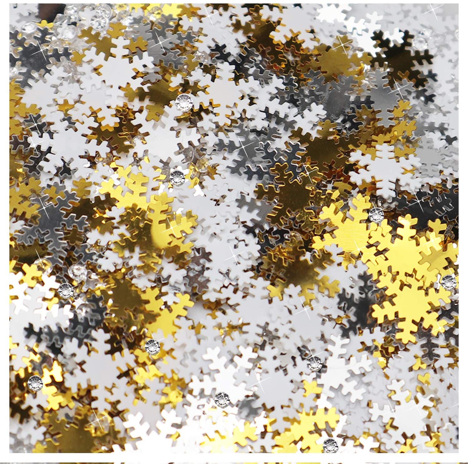 Leesgel 3 Colors Confetti for Packaging, Christmas Snowflake Confetti Glitter, Table Party Confetti Snowflakes for Crafts Christmas Table Party Snowflake Decorations (1000pcs Includes Fake Diamonds)