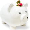 The money bank has enough space,decent big size,Bottom plug stays tight,when the number of coins increases,the large piggy bank will not fall.good …