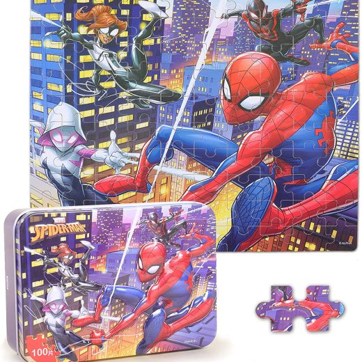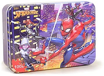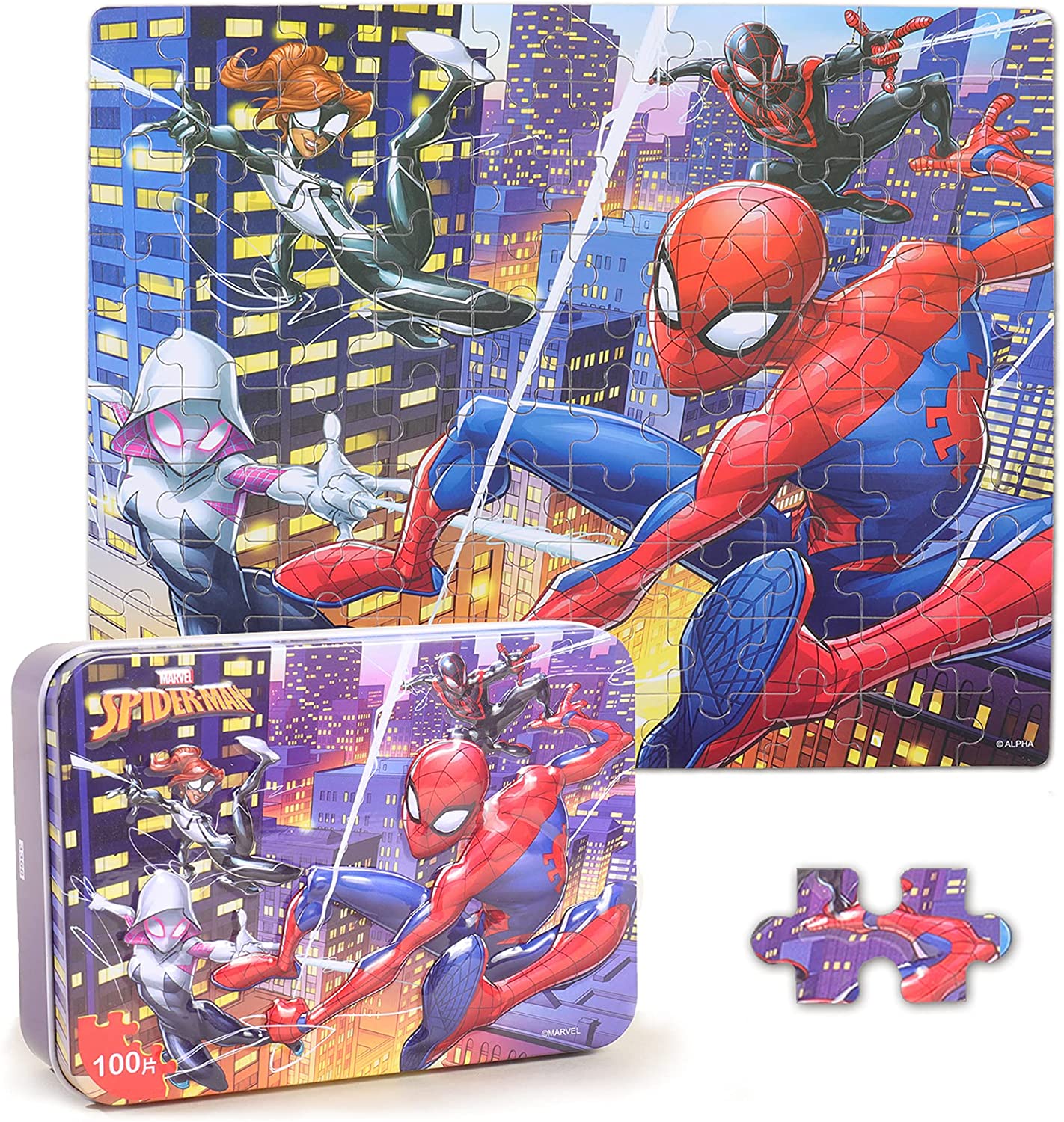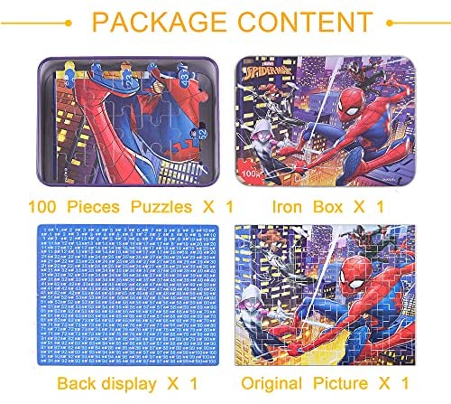 LELEMON 100 Pieces Spiderman Jigsaw Puzzles in a Metal Box for Kids Age for 4-12 Boys Girls Toy Puzzles Children Learning Educational Puzzles Toys