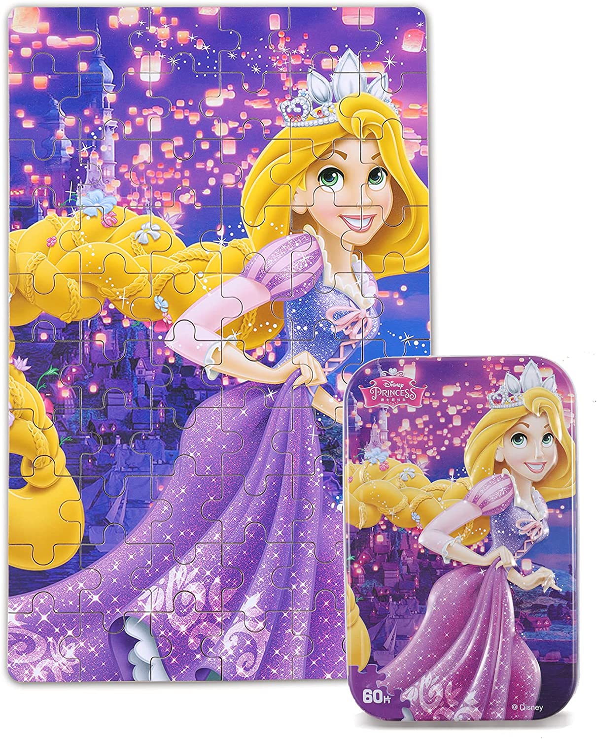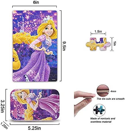 60 Pieces Rapunzel Puzzles for Kids in a Metal Box Princess Wooden Jigsaw Puzzle for Children Girls Ages 4-8 Learning Educational Puzzles Toy