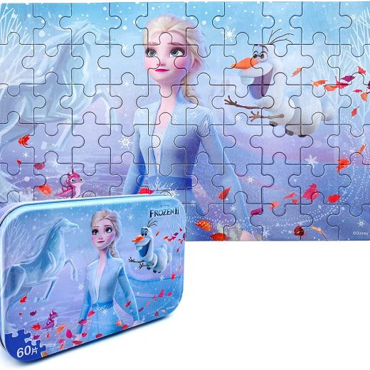Frozen Puzzles in a Metal Box 60 Piece Elsa Princess Winter Adventures Puzzles for Kids Ages 4-8 Children Learning Educational Puzzles Toys A