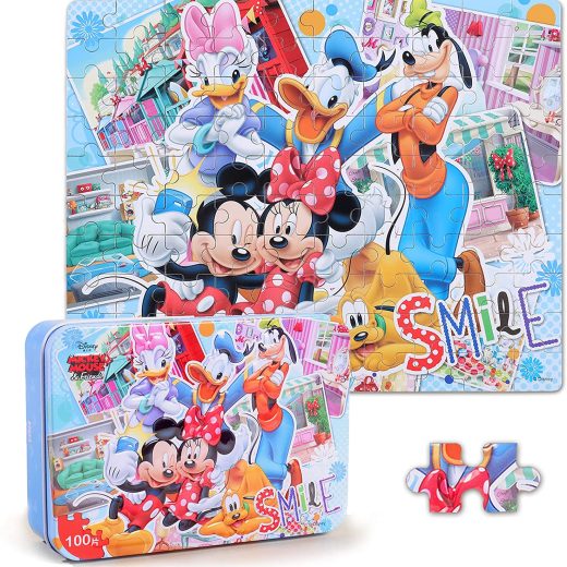 Mickey Mouse Puzzle for Kids Ages 4-8 in a Metal Box 100 Piece Learning Educational Puzzles for Children Girls and BoysMickey Mouse