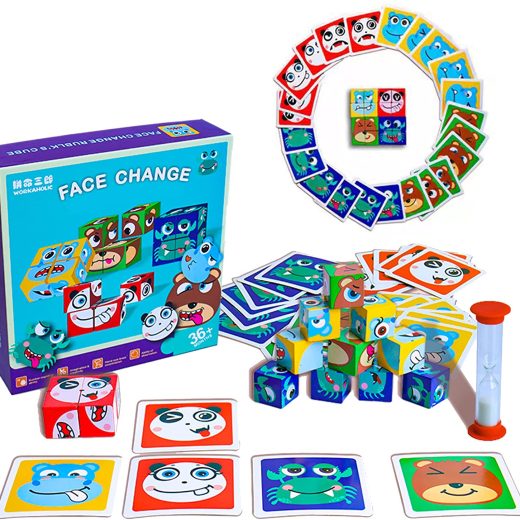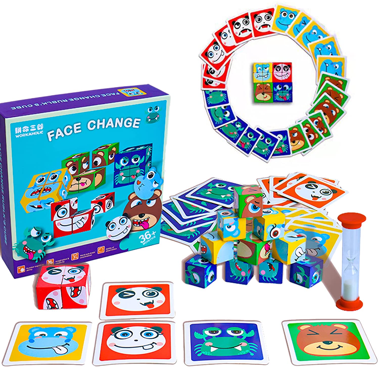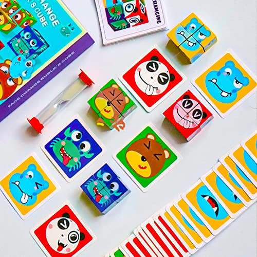 LELEMON Face Change Cube Blocks for Kids Expression Matching Building Game with Hourglass Montessori Educational Toy Logical Thinking Training for Children