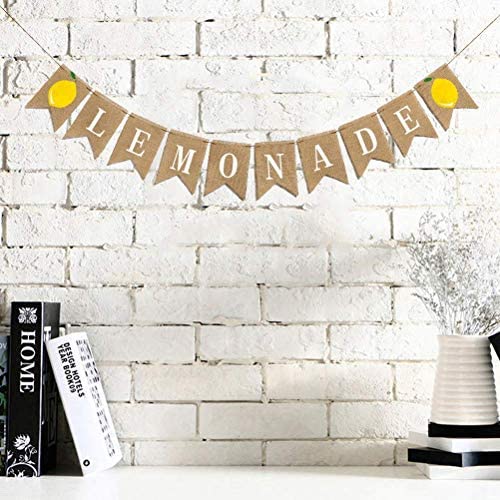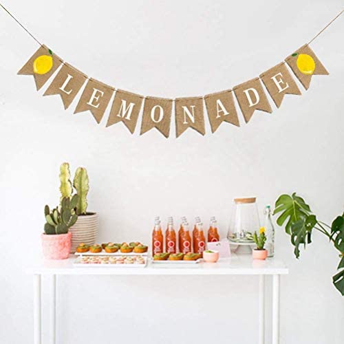 Lemonade Banner Burlap Bunting Banner Summer Garland Flag Decoration for Pool Party, Beach Party, Barbecue Party