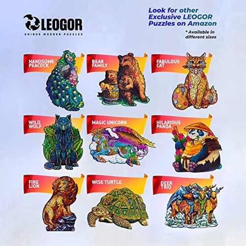 LEOGOR Extra Large Wooden Jigsaw Puzzle, Animal Shaped Handsome Peacock – 376 pcs, 19.7