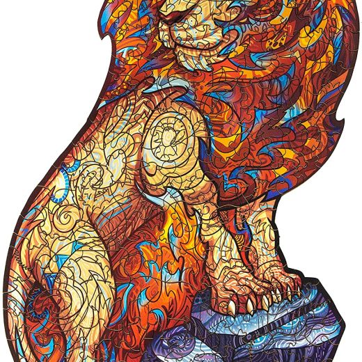 LEOGOR Wooden Jigsaw Puzzle, Unique Shape Jigsaw Pieces, Best Gift for Adults and Kids, Animal Shaped Fire Lion – 201 pcs, 14.6