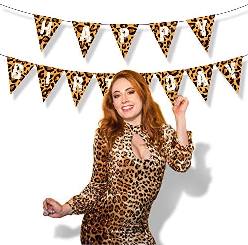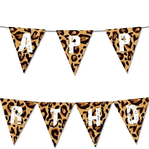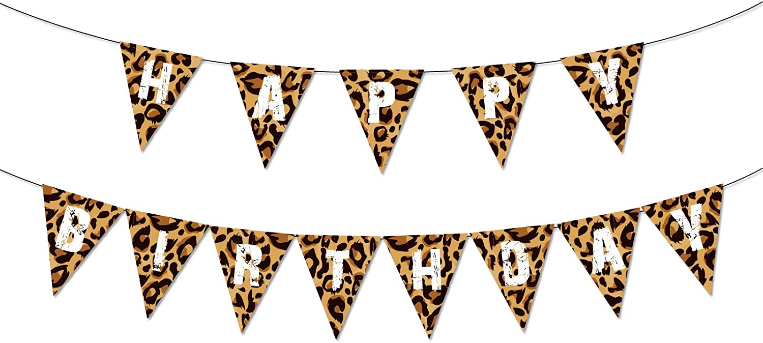 Leopard Happy Birthday Banner Cheetah Print Pennant Banner Leopard Wild Birthday Party Decoration Jungle Safari Party Supplies