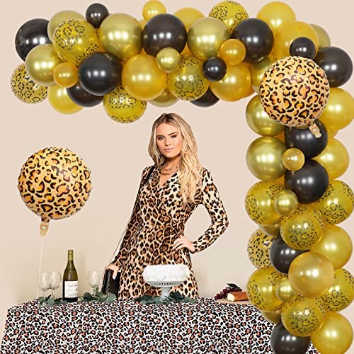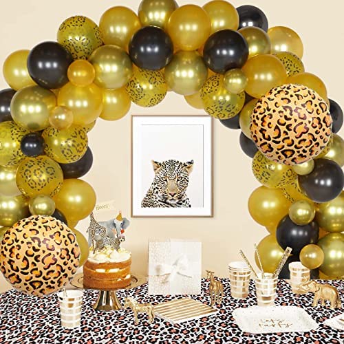Leopard Print Party Supplies, Cheetah Print Balloon Garland Arch Kit – Leopard Print Balloons, Tablecloth for Lets Get Wild African Theme Party Decorations