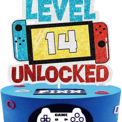 Level 14th Unlocked Cake Topper – Electronic Games Theme Boys Birthday Party Decorations Supplies – 14th Happy Birthday
