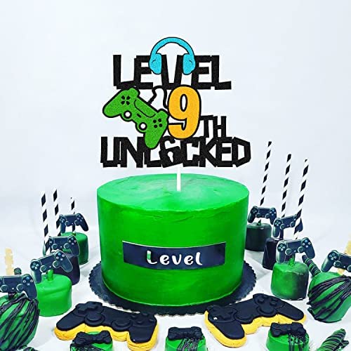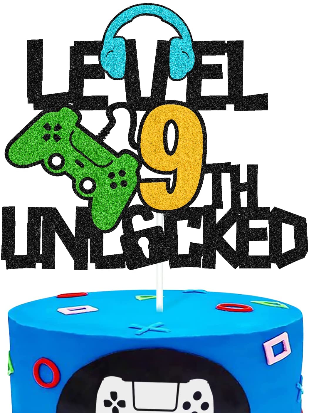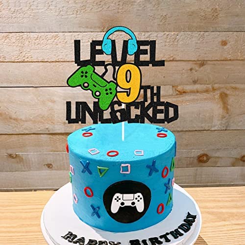 Level 9TH Unlocked Cake Topper, Happy 9th Birthday Level Up Cake Decoration, Video Game Controller Play Game Theme, Boyu2019s ninth Birthday Party Suppli