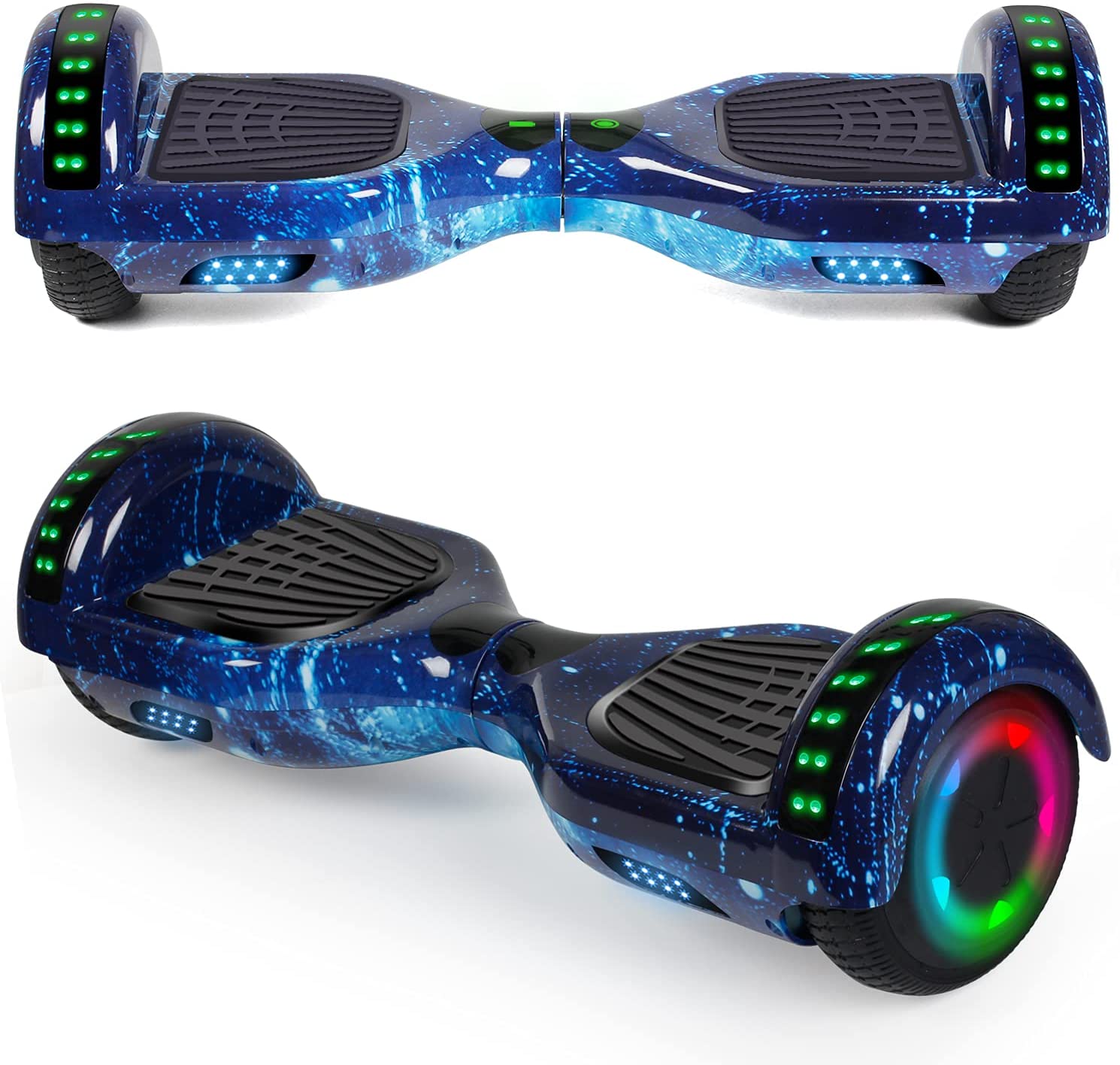 6.5 INCH LARGE WHEELS: High intensity LED headlights provide you safer ride at night, now you can ride it to anywhere at any time.Awesome RGB LED design with color lights,give you a colorful and freely experience.