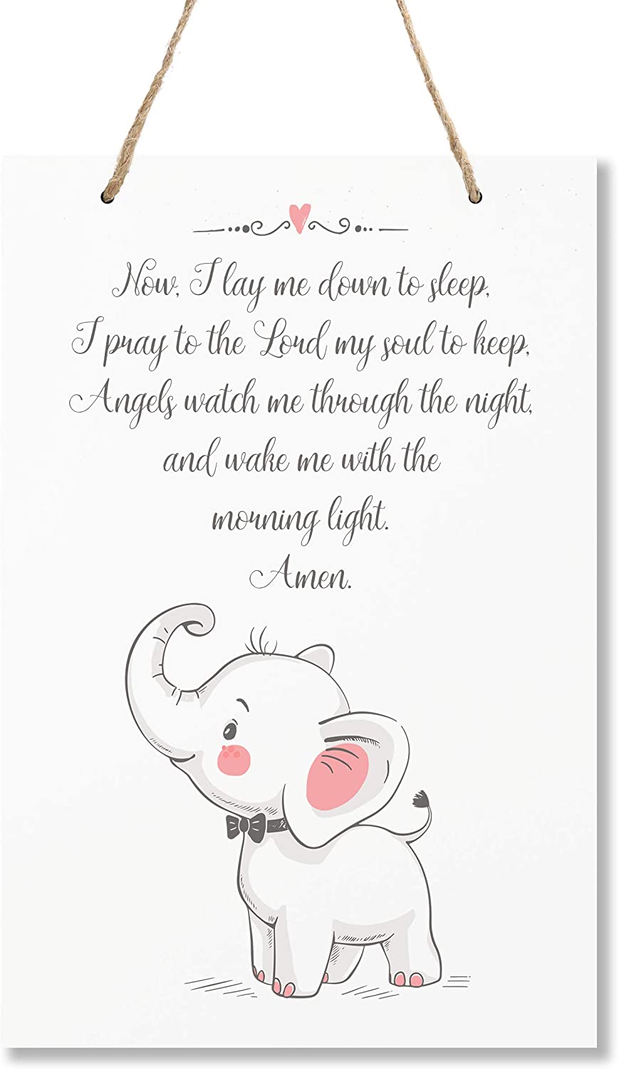 LifeSong Milestones Elephant Wall Decor Decorations signs for Kids, Bedroom, Nursery, Hallways, Babyu2019s Boys and Girls room, Toddlers size 8u201d x 12u201d Proudly Made in USA (Now I lay me down to sleep pink)