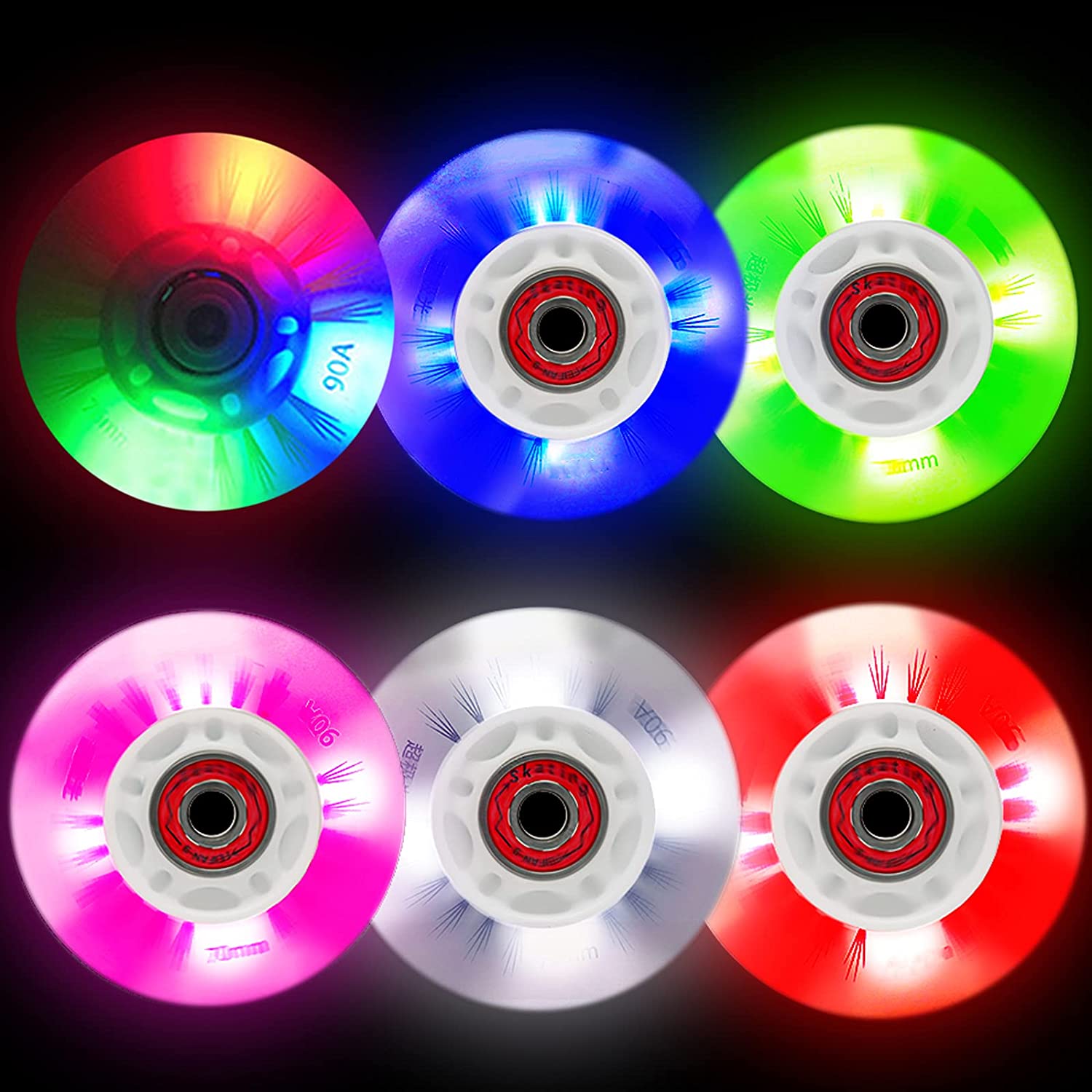Light Up Inline Skate Wheels 4 Pack – Luminous Flash Inline Skates Replacement Wheel 80mm