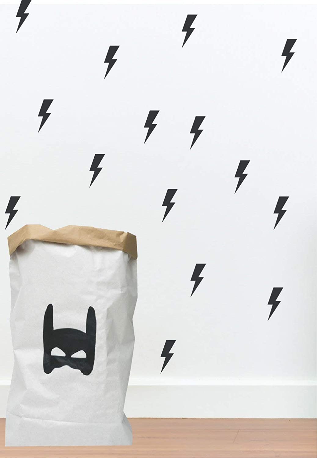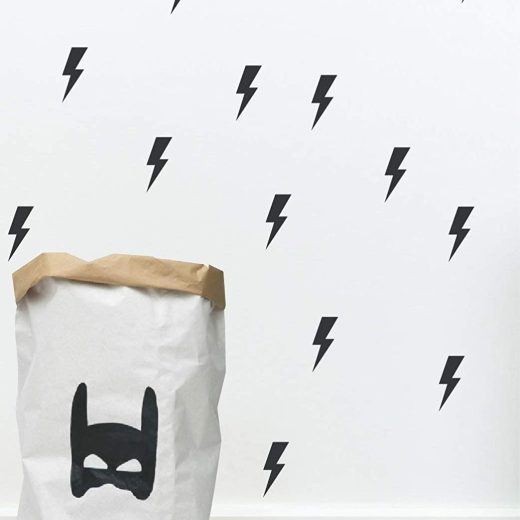 Add a burst of electricity to your room with our lightning bolt wall stickers. Bolt sticker texture is free from any harmful ingredients.Wall stickers come in a matte finish and are an easy way to decorate a plain wall. Durable wall stickers are quick to apply and can be stuck to just about any smooth surface, from walls and doors to wardrobes and mirrors.Repositionable black lightning bolt stickers are easy to remove and reuse again. Great and simple way to decorate your childs bedroom, playroom or nursery Durable and SafeKeeping your childs safety as a front and center of our concern, we have customized our wall stickers using premium quality PVC material. This handcrafted material is given a beautiful black color using safe ink which makes bolt stickers great for the environment and safe for kids to touch. This durable material does not tear/ stretch or curl when handled with care. Easy Application and RemovalOur wall stickers are designed for a quick and easy application. Self-sticking wall stickers do not require any water or messy paste. Just peel the backing and stick them to the wall. Wall decals are easily removable if you decide youd like a change or made a mistake while sticking. You can gently peel them off without damaging the wall or leaving any mark Great for Kids Room DecorBolt stickers with black color matte finish are an effortless way to electrify living places and add a dash of playful action to your little ones living room. They make a great repeating pattern, or you can go random with your placement Lightning Bolt Sticker Size Each lightning bolt sticker measures approximately 3.5×7.5 cm (1.4 x 3 inches)Single pack would cover a wall of approximately 0.8 x 2.4m Note: Before application, make sur