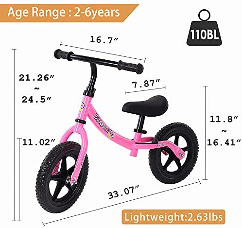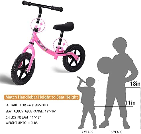 Lightweight Sport Balance Bike for Toddlers and Kids Ages 2 3 4 5 Years Old No Pedal Walking Balance Training Bicycle Adjustable Seat and Handlebar Height