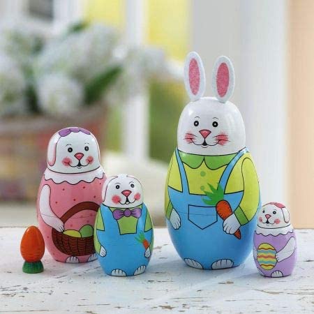 Lillian Vernon Hand Painted Wooden Easter Bunny Nesting Doll Set – Holiday Home Decor, Spring Themed Table Decorations, Matryoshka Toys, 6 Inches Tall, Set of 5 Figurines