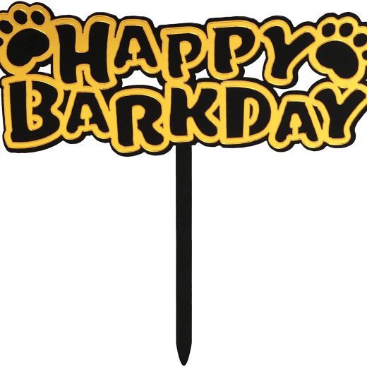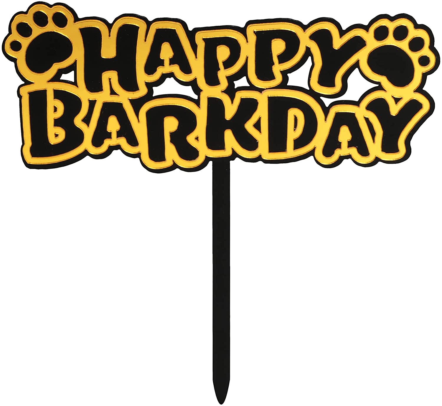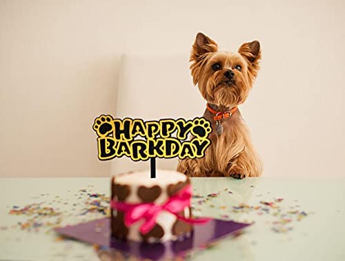 LINGAIXINYUE Happy Barkday Cake Topper for Dog -Black and Gold Dog Paw theme Cake Decoration for 1st Puppy Birthday Party , Pet Birthday Party Decoration Supplies