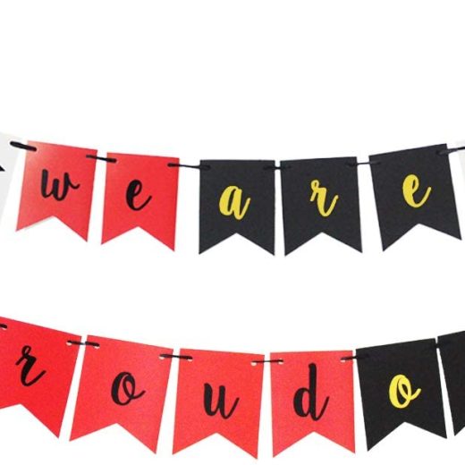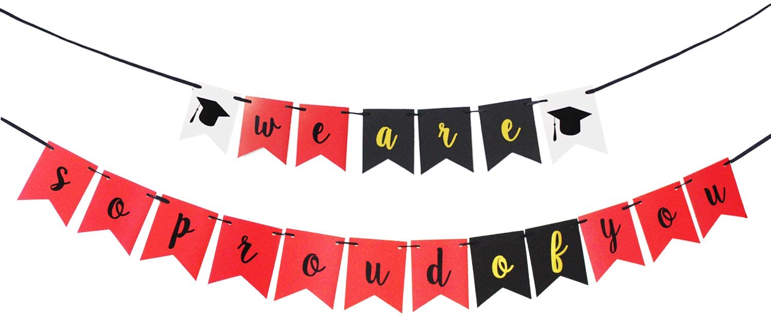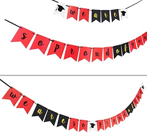 LINGPAR We are Proud of You Banner – Perfect Graduation Decorations Party Supplies for Grad Party Bunting Red White Black