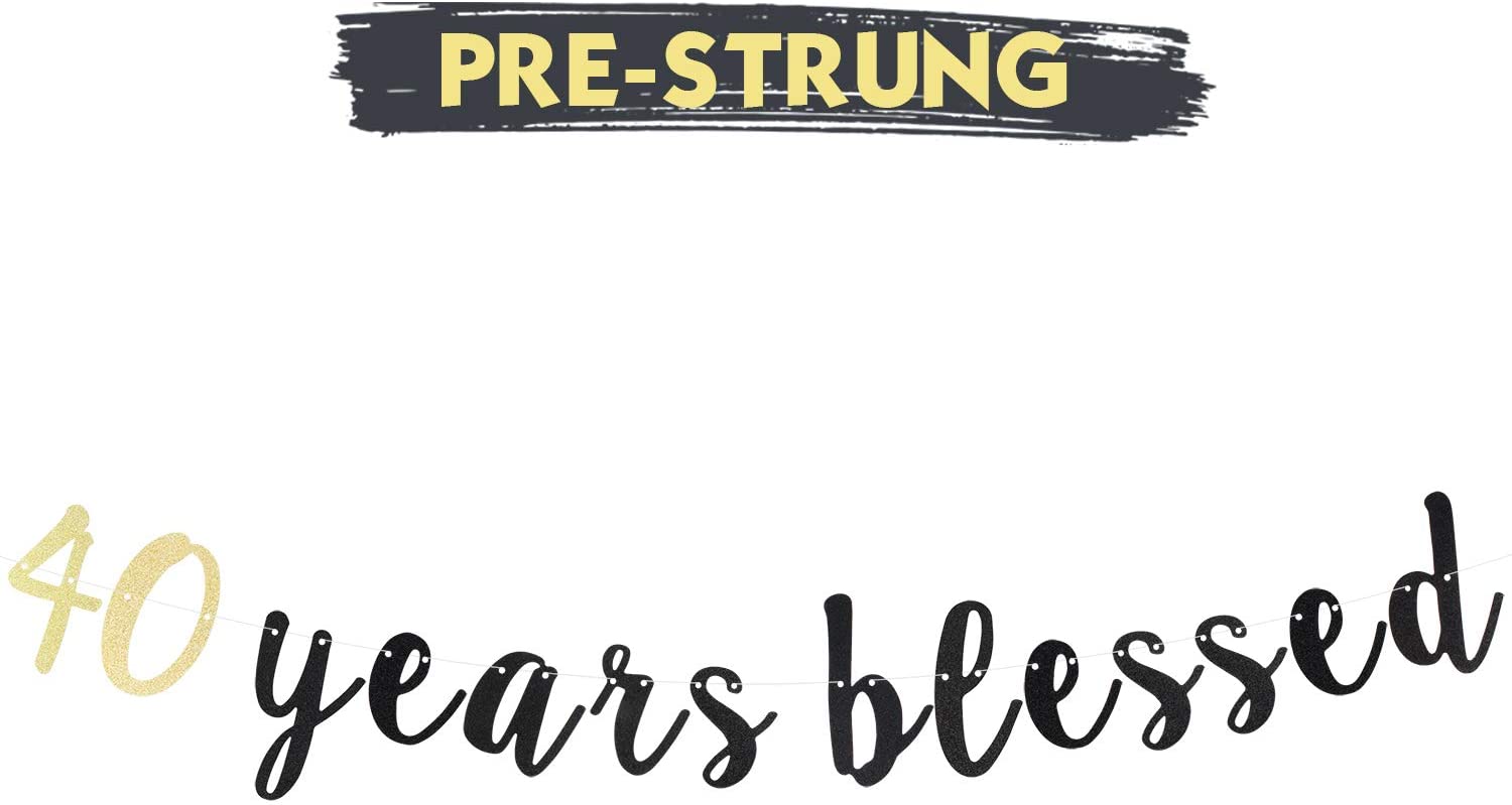 LINGTEER 40 Years Blessed Black and Gold Glitter Bunting Banner 40 Years Old Happy 40th Birthday Anniversary Party Decorations.