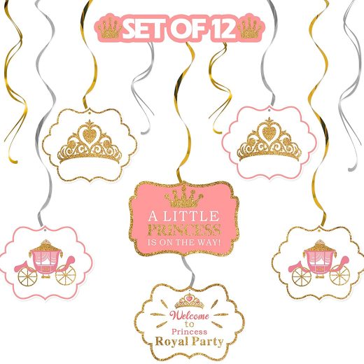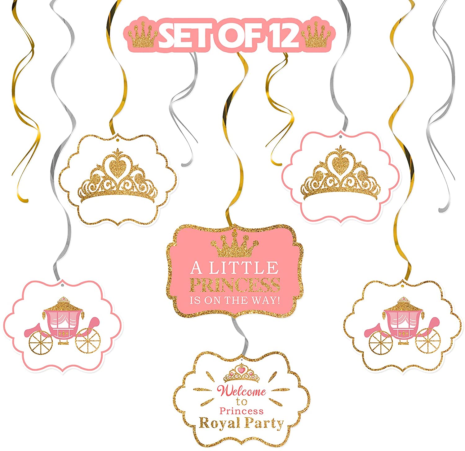 LINGTEER A Little Princess Royal Crown Pink Swirls Streamers – 12 pcs Princess Baby Girl Birthday Shower Party Decorations Gift Sign.