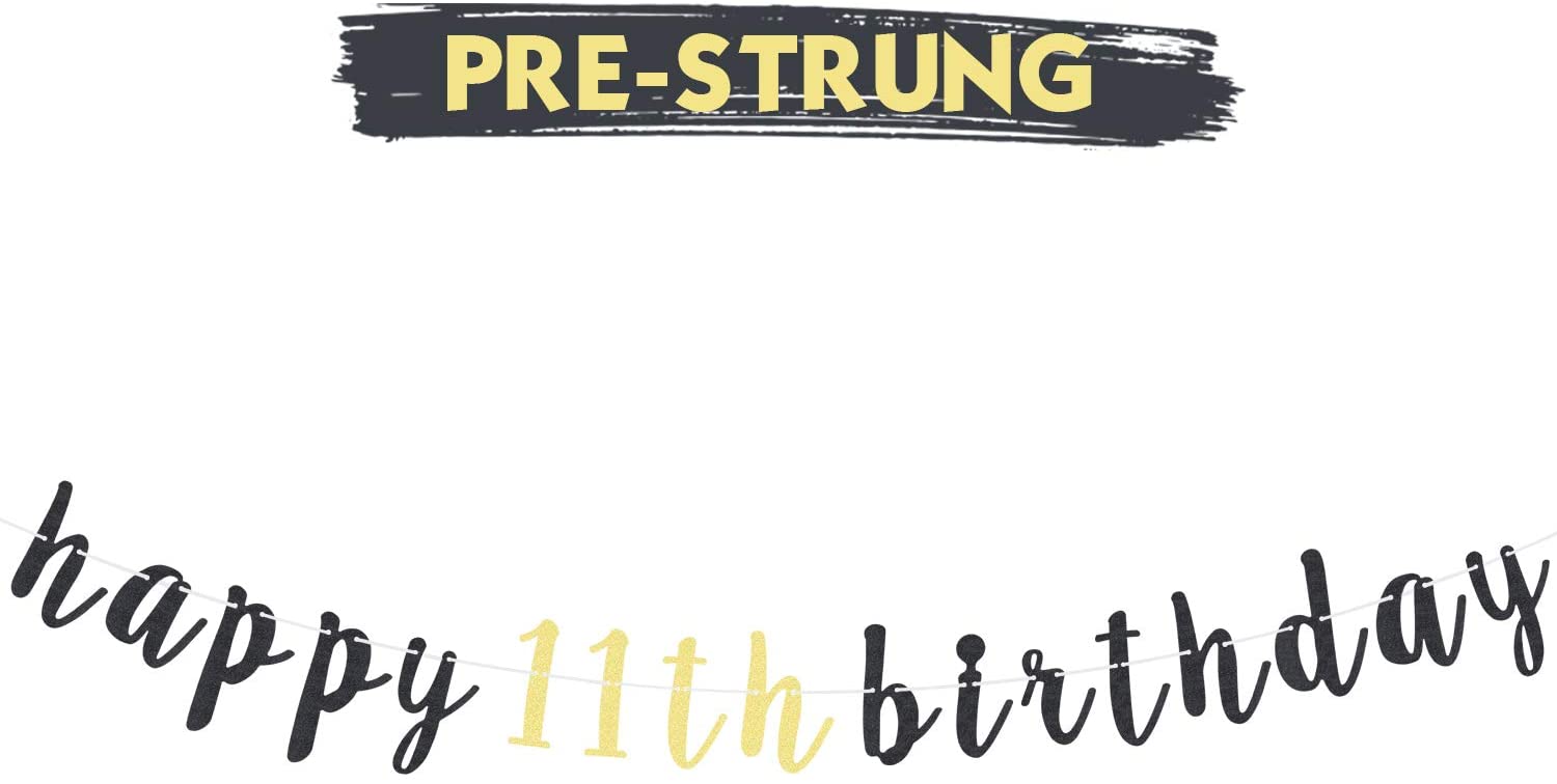 LINGTEER Happy 11th Birthday Banner – Cheers to 11th Birthday Eleven Years Old Bday Party Hanging Backdrop Decorations.
