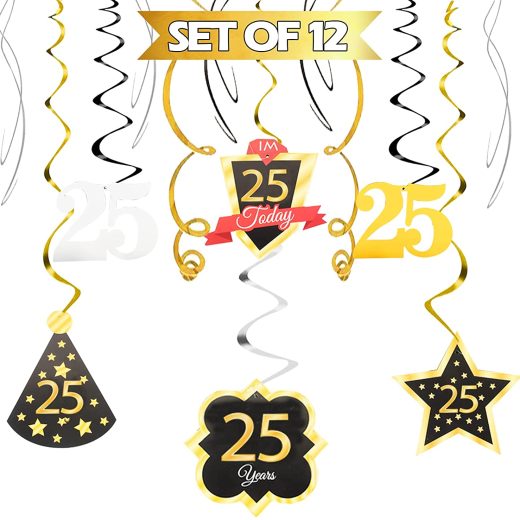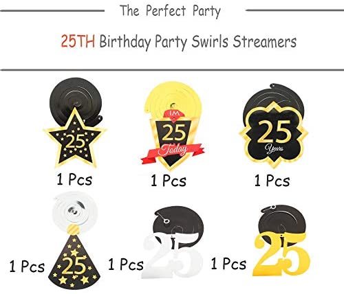 LINGTEER Happy 25th Birthday Swirls Streamers – Cheers to 25th Birthday 25 Years Old Bday Party Hanging Decorations.
