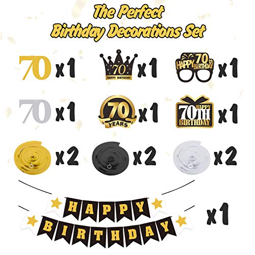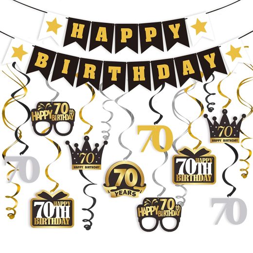 LINGTEER Happy 70th Birthday Swirls Streamers Set – Happy Birthday Banner,Cheers to 70th Birthday Seventy Years Old Bday Party Hanging Backdrop Decorations.