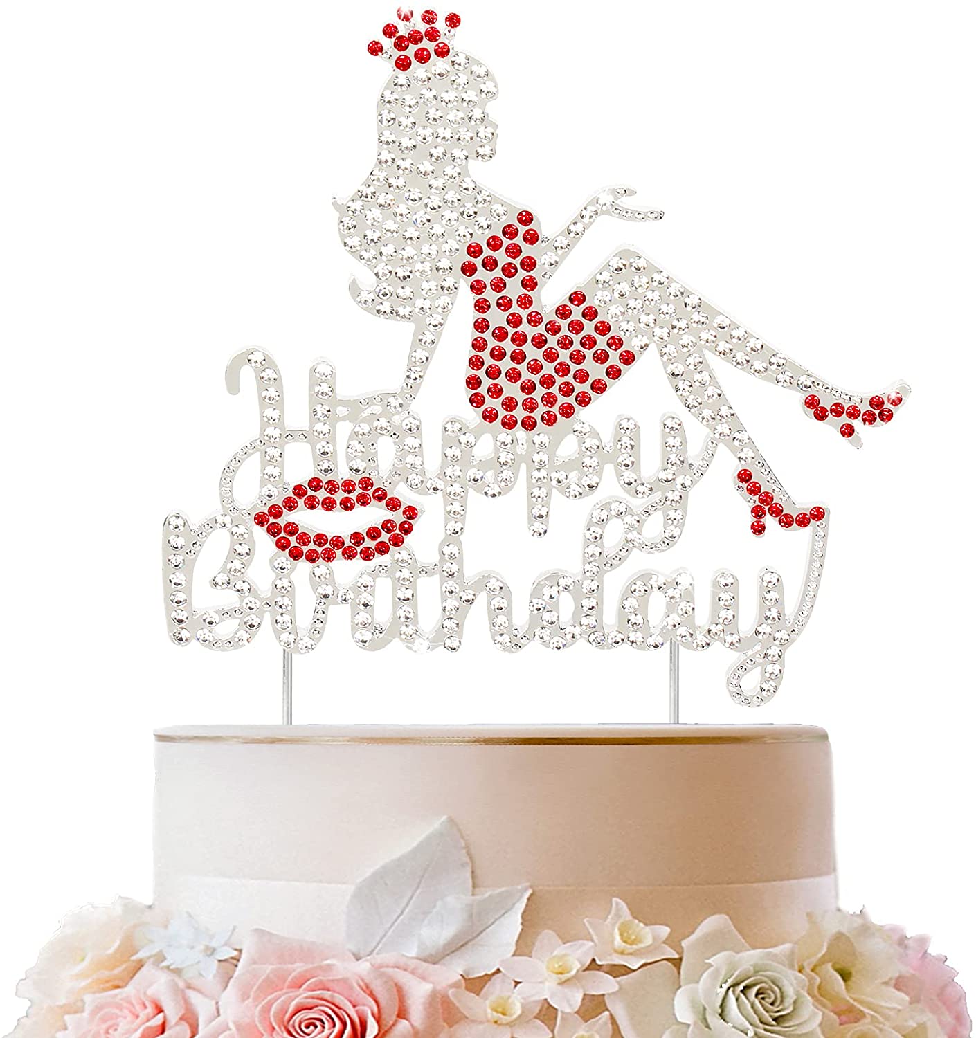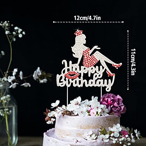 LINGTEER Happy Birthday Crown Queen Lady Rhinestone Cake Topper – Cheers to Makeup Spa Birthday Party Cake Centerpieces Decorations Gift Sign – Red…
