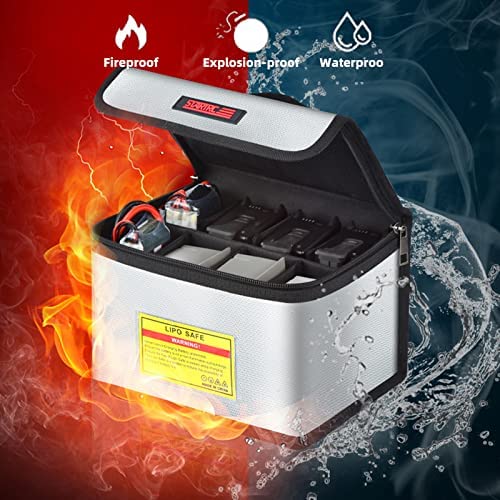 LiPo Battery Bag :Lipo safe bag will prevent the flames of unforeseen lipo battery ignited from spreading, to protect house and car from fire when charging, storing, carrying and transporting multiple lipo batteries.Suitable for drone batteries, remote control aircraft batteries, remote control car batteries, etc.