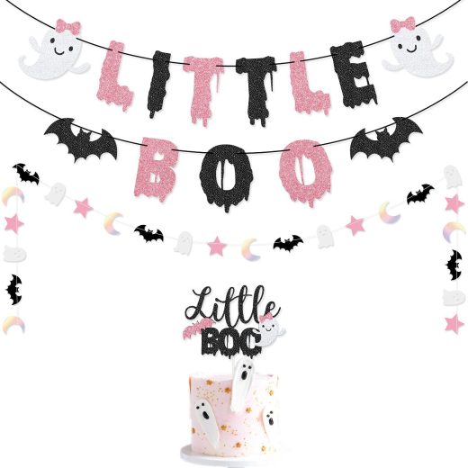 Little Boo Banner for Halloween Girl Baby Shower the Spooky One Halloween 1st Birthday Party Pink Black Girl Halloween Party Decorations