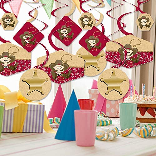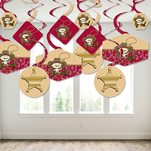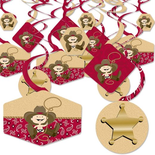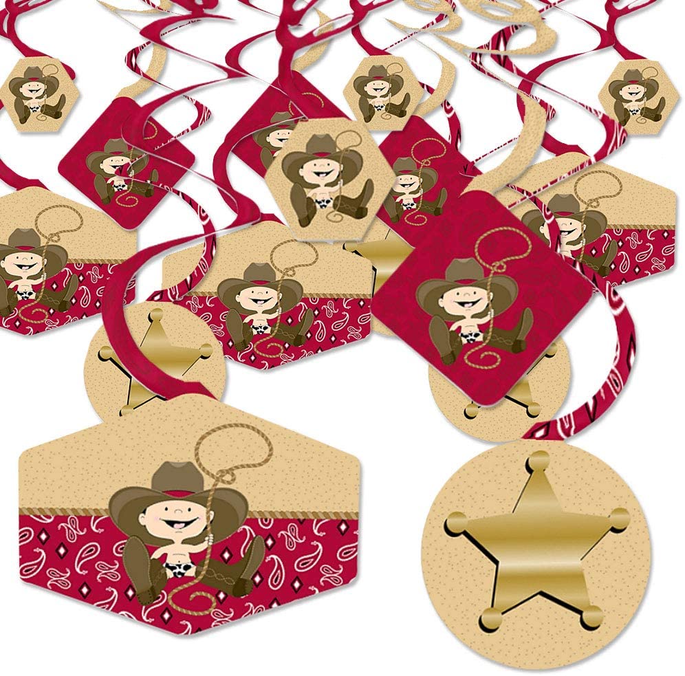 Little Cowboy – Western Baby Shower or Birthday Party Hanging Decor – Party Decoration Swirls – Set of 40