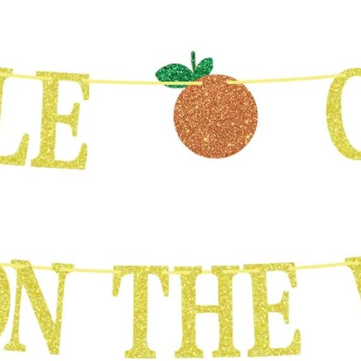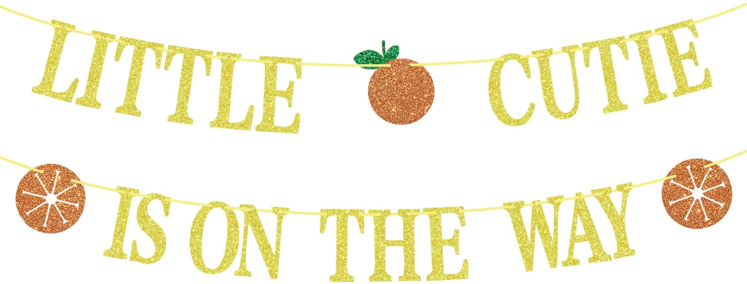 Little Cutie Is On The Way Banner – Tangerine Theme Baby Shower Party Bunting Sign, Welcome Baby/Baby Shower Party Decorations (Gold and Green)