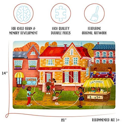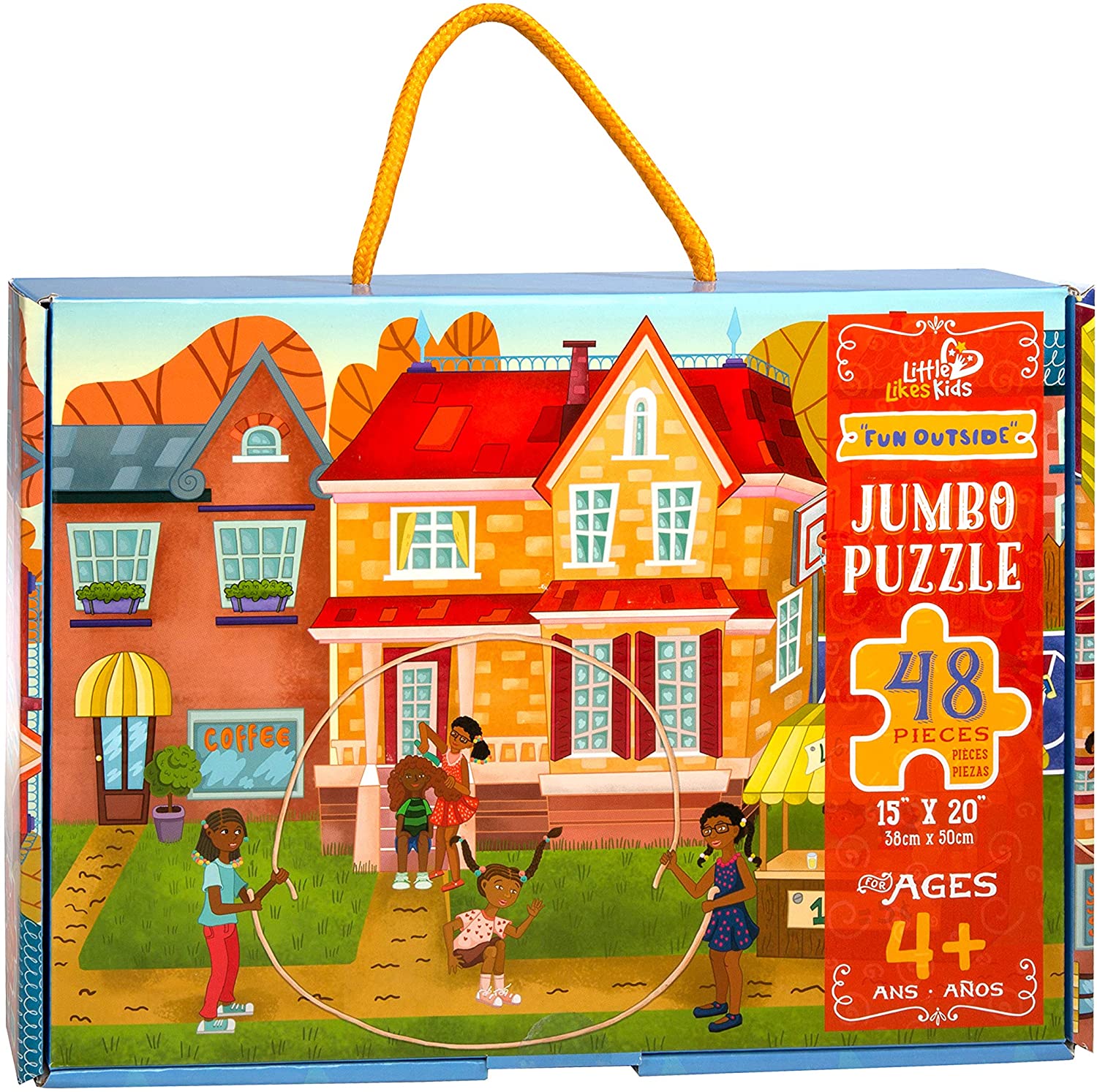 Little Likes Kids – Fun Outside 48 Piece Floor Puzzle, Multicultural Beginner Jigsaw Puzzle with African American Children Boys Girls at Play, Ages 4+