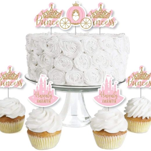 Little Princess Crown Dessert Cupcake Toppers INCLUDES 24 clear treat picks, 24 shaped paper cut outs and stickers for easy assembly. DIY Little Princess Crown cupcake supplies are perfect for a baby shower or birthday party. Plastic clear treat pick SIZE 3.5 inches tall with the completed height of the Little Princess Crown Dessert Cupcake Topper depending on where the plastic pick is attached to the shaped paper cut out. Cupcake toppers are perfect for standard cupcakes and can also be added to appetizers and individual servings of other sweet treats such as brownies or donuts, and even used to create small fruit kabobs. EASY PARTY DECORATIONS: Little Princess Crown Baby Shower or Birthday party picks make it easy to style a pink princess theme party. Create impressive cupcake towers with decorated treats placed on a tiered stand at the candy buffet table, style adorable tables with individual cupcakes at each place setting, or make creative centerpieces using decorated treats and a coordinating treat stand. PREMIUM PARTY SUPPLIES: Clear treat picks are made of food-grade plastic and packaged in a food-safe environment. The Little Princess Crown paper cut out toppers are professionally printed on heavy-duty cardstock paper with themed art on one side and a coordinating pattern on the back. Cut outs will quickly attach to the clear dessert pick and then easily insert into your party appetizers or desserts. EASY ASSEMBLY INSTRUCTIONS INCLUDED: Clear treat picks and Little Princess Crown shaped cutouts will ship with easy assembly instructions to create unique dessert cupcake toppers. Little Princess Crown Dessert Cupcake Toppers use a No-Mess Glitter Print: Our cupcake toppers are designed with a printed image of glitter, eliminating glitter flake while maximizing bling effect!
