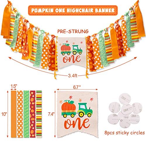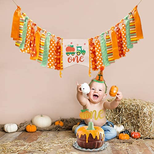 Little Pumpkin First Birthday Highchair Banner Decorations, Fall Harvest Birthday Highchair Banner Cake Smash Cone Hat Decorations Set for Baby Boy Girl 1st Birthday Party Supplies, 3 in 1
