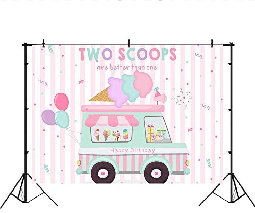 Lofaris Ice Cream Theme Truck Shop Party Backdrop Girls Pink Happy 2nd Birthday Background Little Princess Two Scoops are Better Than one Party Decorations Cake Table Banner 7x5ft