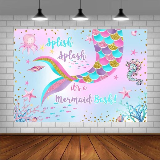 Lofaris Mermaid Birthday Party Backdrop Under The Sea Little Mermaid Background for Girls Princess Birthday Party Banner Children Kids Baby Shower Newborn Baby Party Supplies Photo Studio Props 7x5ft