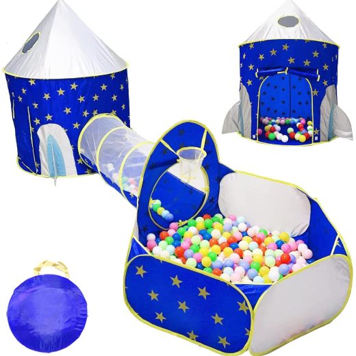 3-IN-1 DESIGN: This rocket ship playhouse will keep your children entertained for hours! Include a rocket ship tent, zipper carrying case, a ball p…