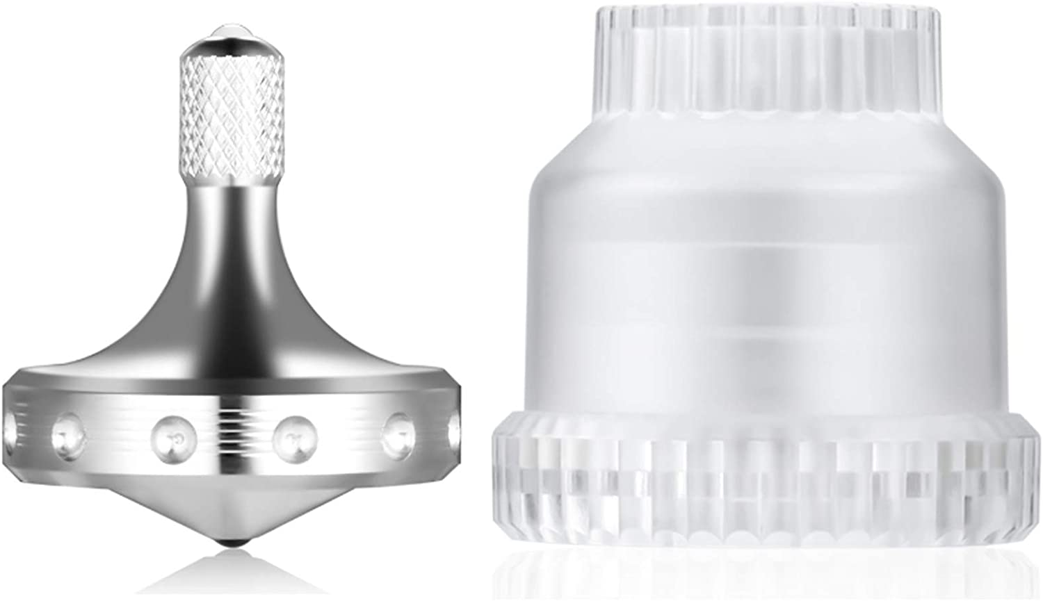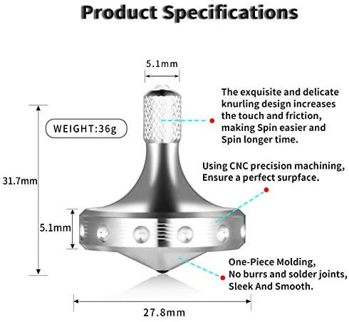 LOQATIDIS Accurate Metal Spinner Top, High Performance Stainless Steel Spinning Tops Desktop Toy for Adults, Perfect Balance Spin Long Time Upright for 5-10 Mins Handstand for 1-3 Mins (Silver)