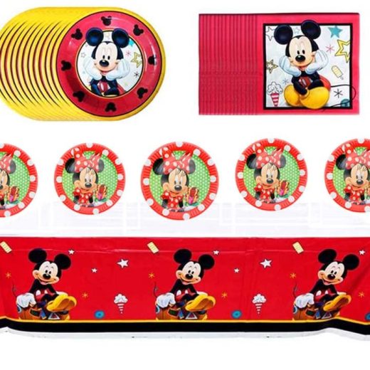 Lovely Mickey Birthday Party Supplies,Includes 20 Paper Plates-20 Napkin-1 Table Cloth Serves 20 Guest,Mickey theme party birthday party supplies