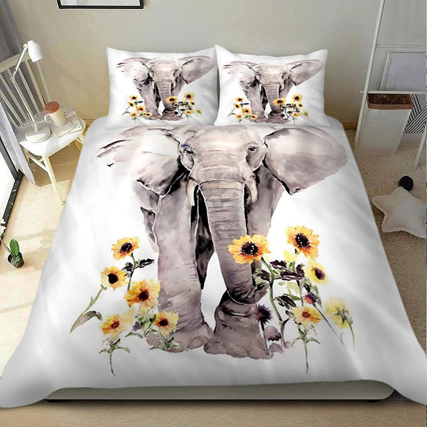 LOVINSUNSHINE Children Comforter Set Elephant Sunflower Comforter Set Kids Elephant Bedding Sets for Girls Sunflower Bedding Comforter Set Full Size 3 Piece Comforter Set –
