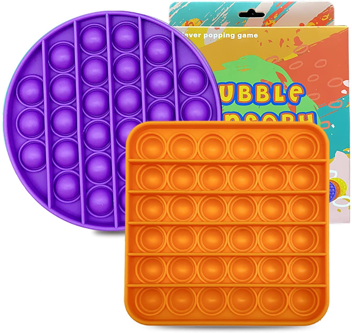 LUCO LUCO 2 Pack Pop Fidget Toy – Push Pop Bubble Fidget Sensory Toy for Anxiety and Stress Relief – Bubble Pop Fidget Toy for Kids with ADD and ADHD – Fidget Toys for Kids and Adults (Orange/Purple)