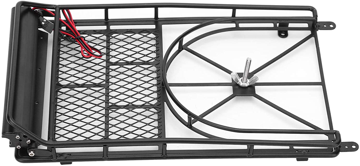 Luggage Rack, RC Climbing Car Metal Roof Luggage Rack with Spare Tire Rack 10 LED Light Bars