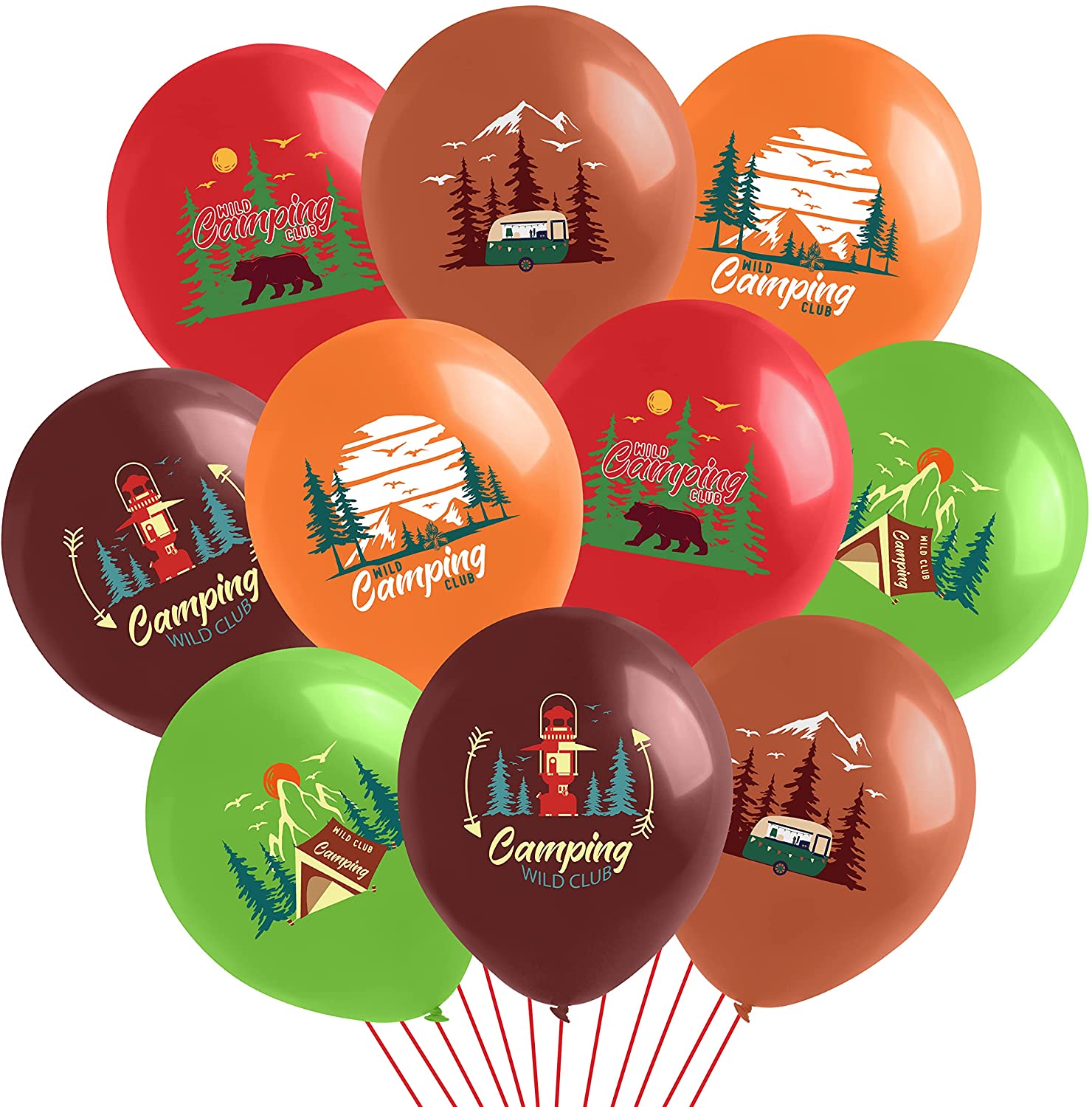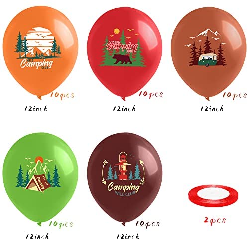 Luiqs Vens 52Pcs Camping Balloons Happy Camper Theme Party Decorations Latex Balloon Woodland Jungle Backyard Camp Out Birthday Photo Props Favor Campfire Fun Adventure Supplies for Boys Girls