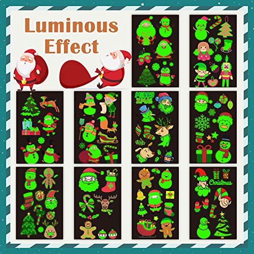 Luminous Christmas Gifts for Kids, Christmas Party Favors Supplies Decorations for Kids, Christmas Tattoos for Kids Christmas Temporary Tattoos (10 Sheets)